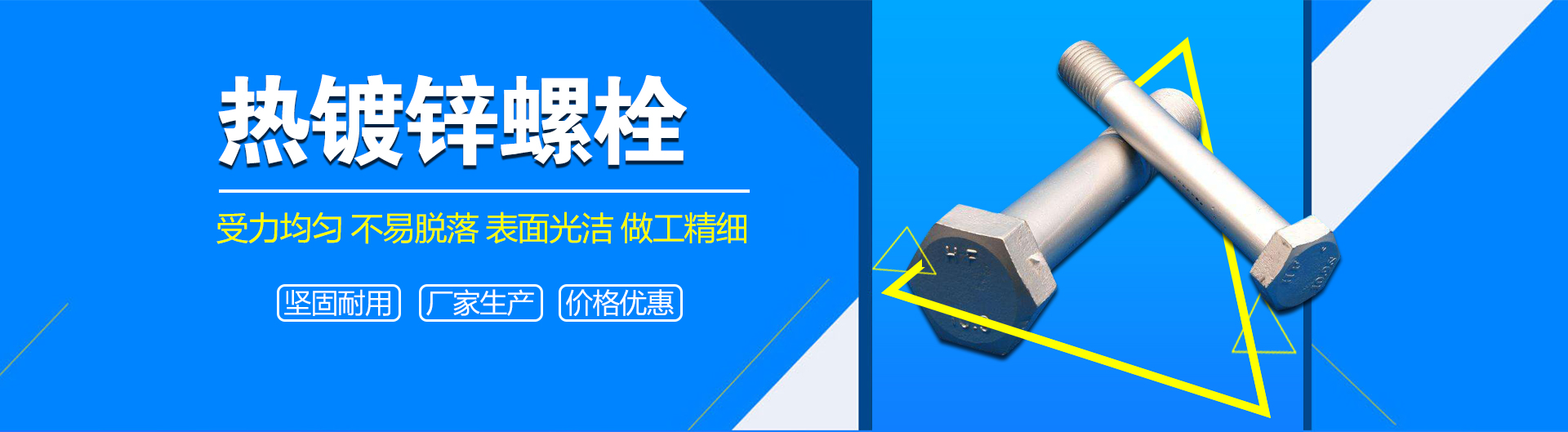 熱鍍鋅螺栓也稱(chēng)熱浸鋅螺栓,是將螺栓,經(jīng)過(guò)除油、除銹,呈現(xiàn)出無(wú)污、浸潤(rùn)的表面,立即浸入到預(yù)先將鋅加熱融熔了的鍍槽中去,在工件表面形成一層鋅鍍層的方法。
